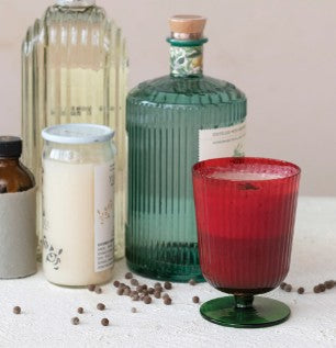 8 oz. Stemmed Fluted Drinking Glass, Green & Red