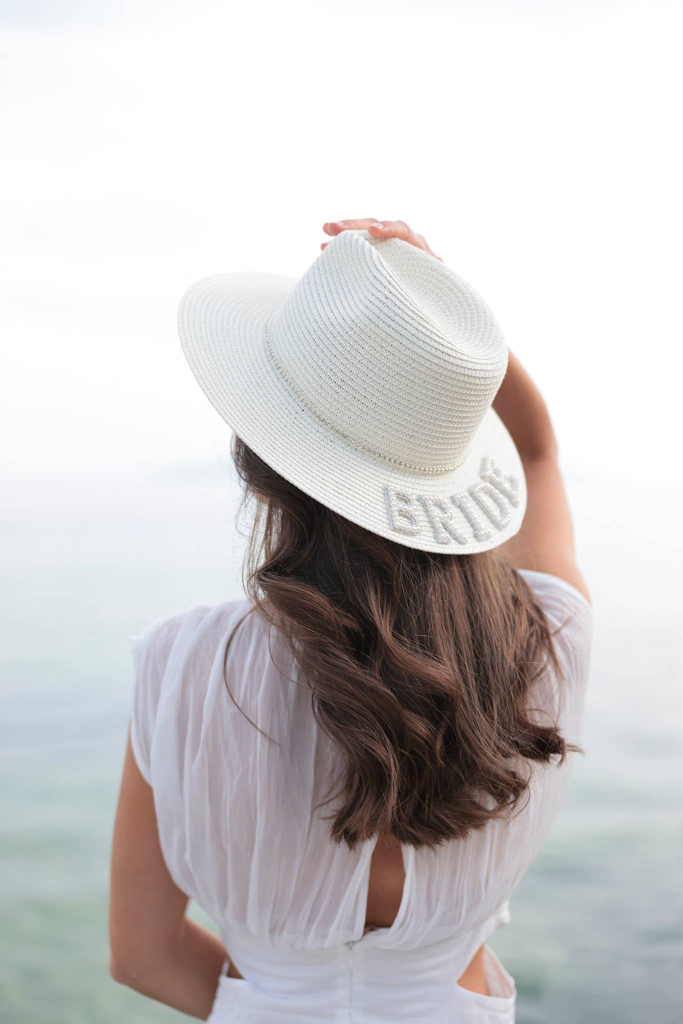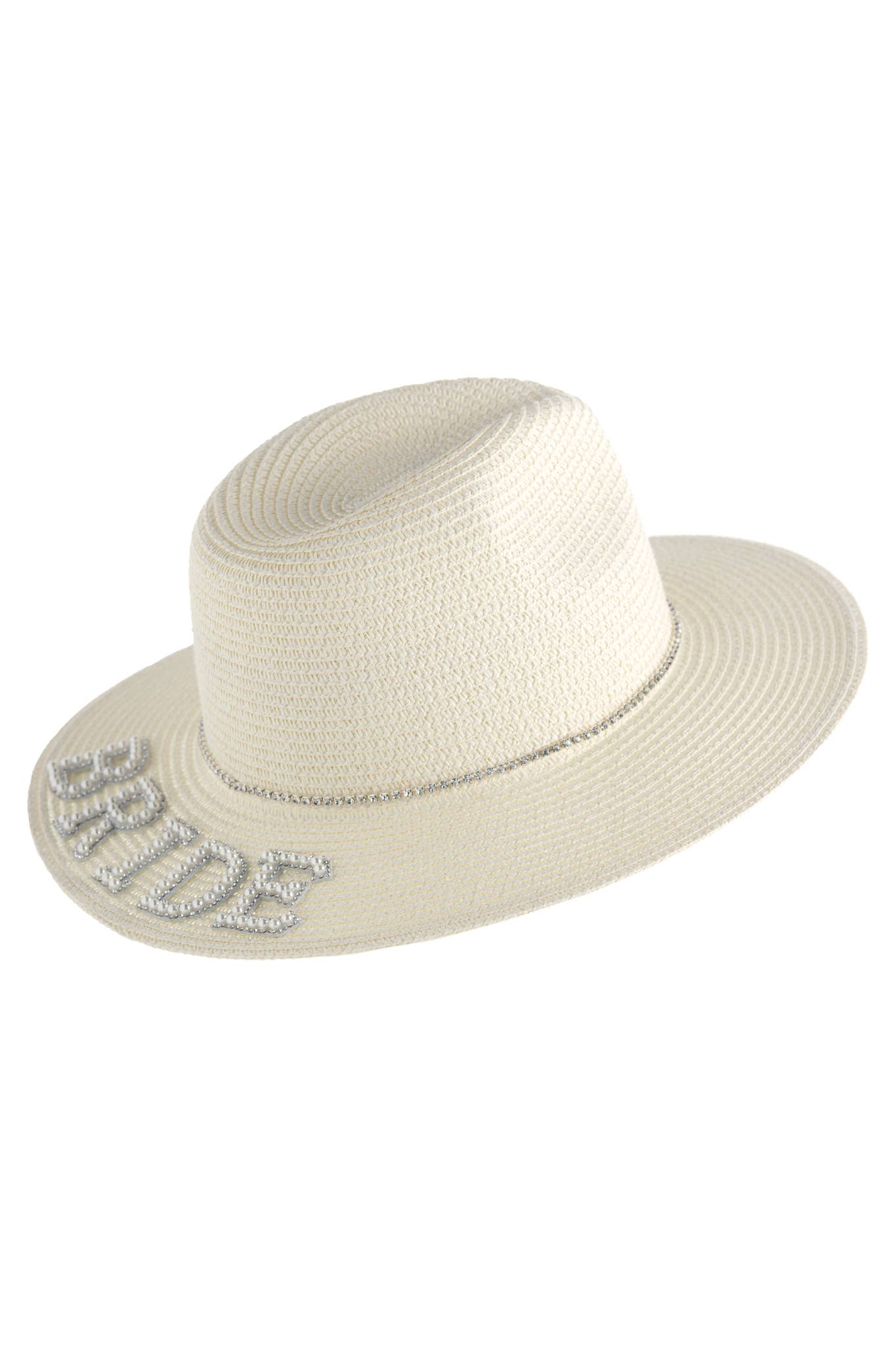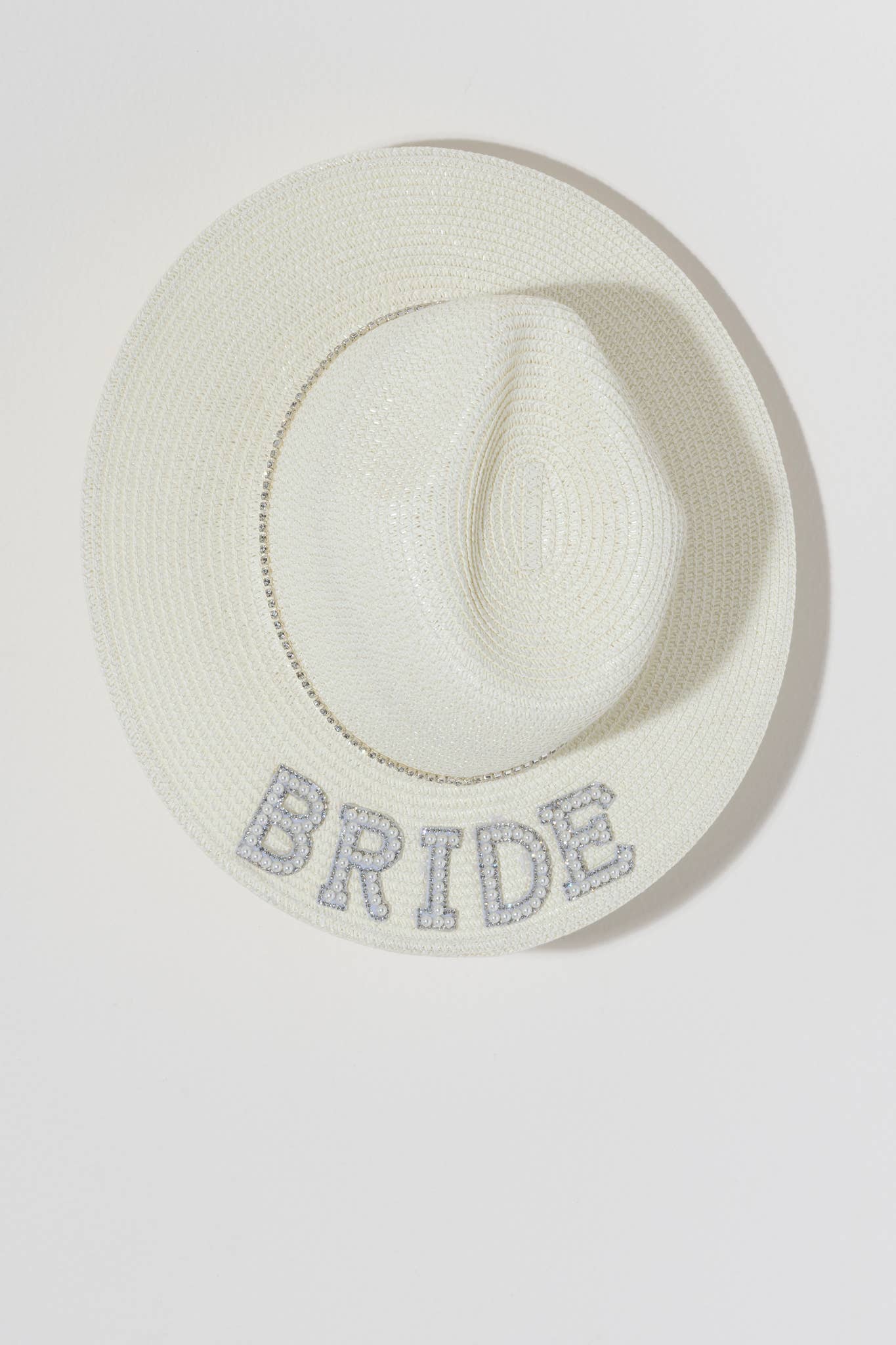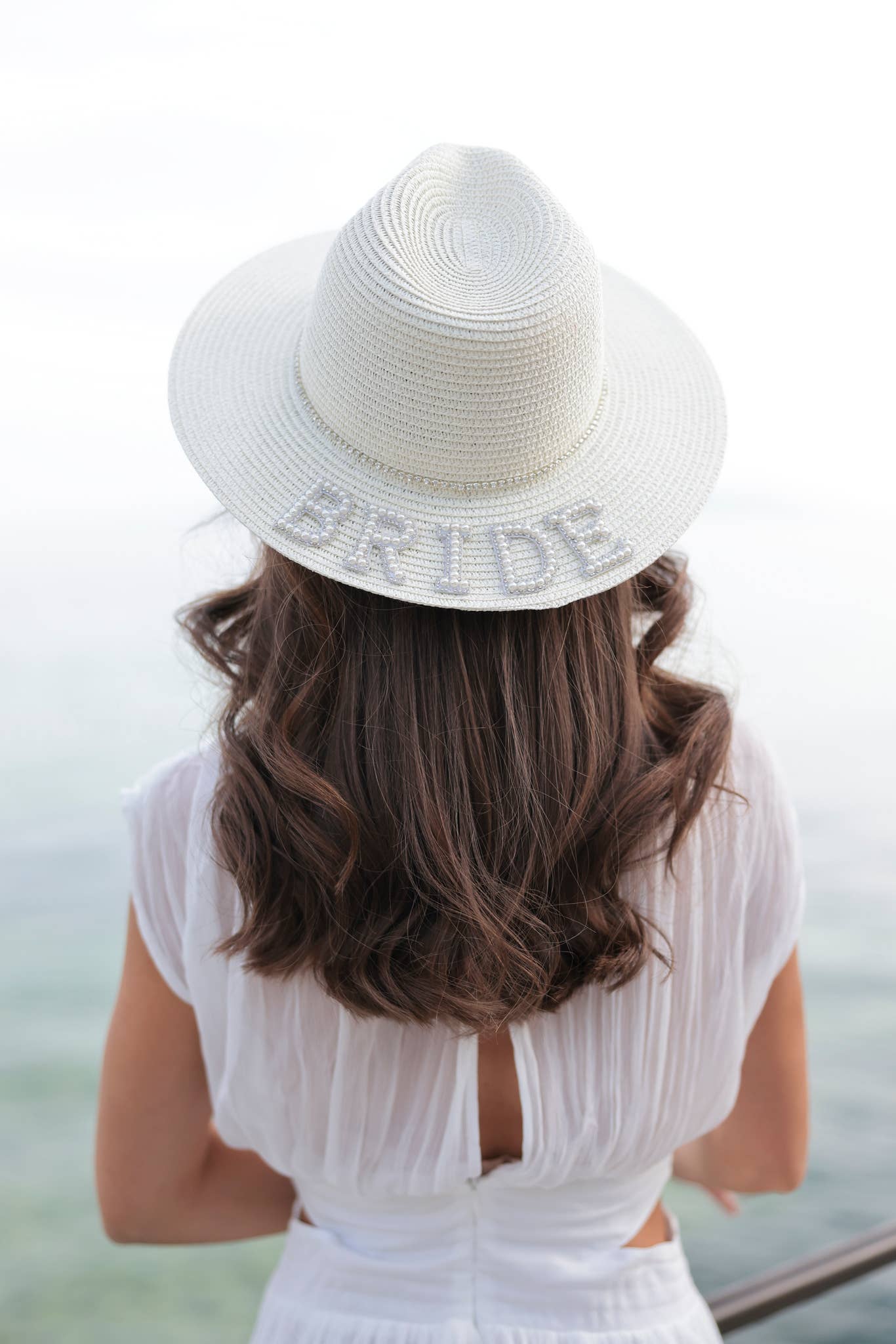 Keep the sunshine out of your eyes this summer with Shiraleah's "Bride" Rhinestone Hat. Made from ivory paper straw with the word "Bride" embroidered in faux pearls and rhinestones, this elegant beach hat is the perfect match to any honeymoon outfit. Pair with other items from Shiraleah's Hitched Collection to complete your look!