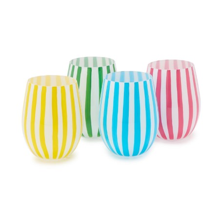 Celebration Striped Stemless Wine Glasses