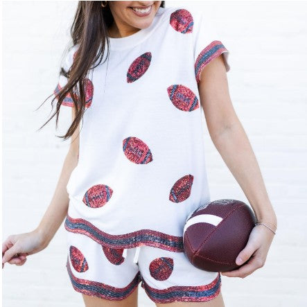 Celebrate gameday in style with the Ginny Sequins Football set from the Mary Square Gameday Collection. Perfect for tailgating, it offers both comfort and eye-catching design, making it an ideal choice for fans who want to stand out while supporting their team.