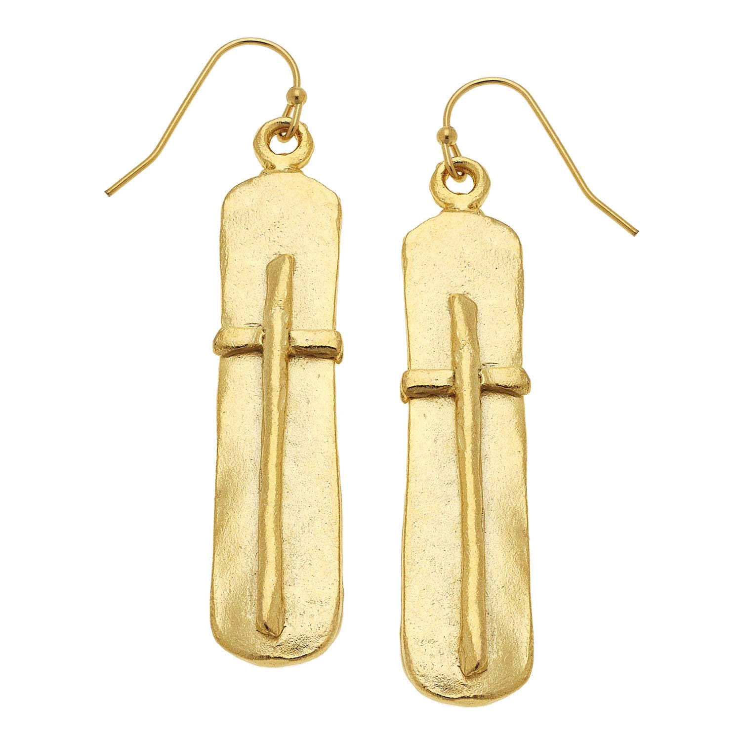 Experience the blend of faith and fashion with Susan Shaw's Gold Bar with Cross Earrings. With a size of 0.375" width and 2.375" length, these dangle earrings make a subtle yet powerful statement. Crafted by skilled artisans in San Antonio, TX, each piece reflects the high quality plating methods, semi-precious stones, and cultured pearls Susan Shaw is known for. Drawing inspiration from Northern European styling, these earrings are a true testament to the brand's commitment to elegance and quality.